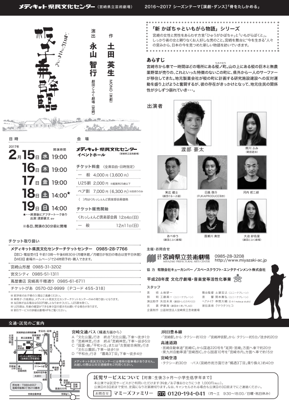 渡部豪太さん主演で、2017年2月15日から宮崎県立芸術劇場で上演される舞台、「板子乗降臨」(いたこのりこうりん)の俳優さん達が畑にいらっしゃいました。