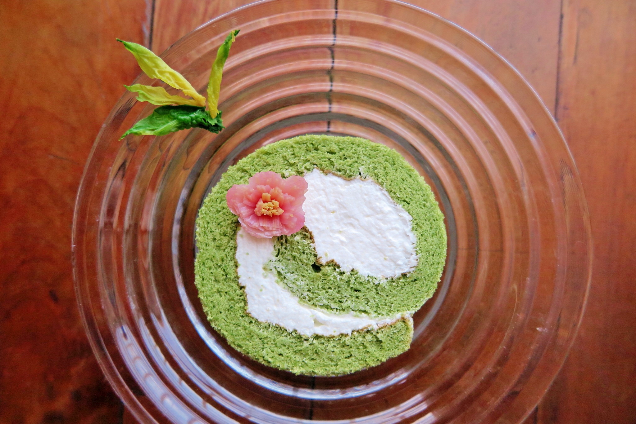 ということで、茹でたほうれん草をペーストにして焼き込んだロールケーキです。